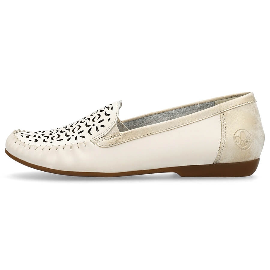 Details: Leather comfortable shoes, women's openwork moccasins, beige Rieker L6350-60