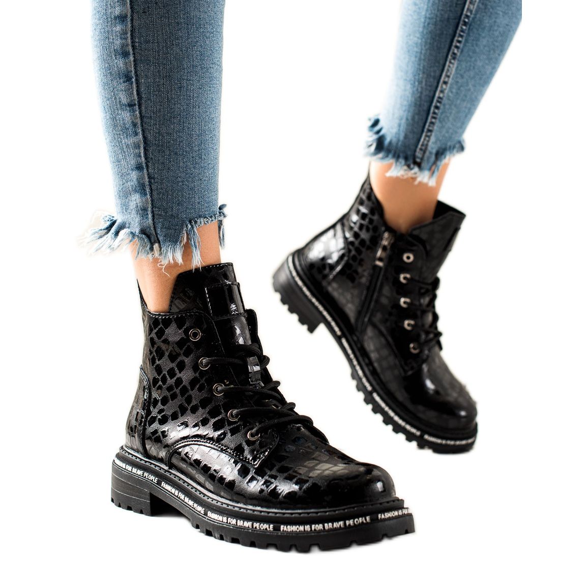 The black color and classic round toe combined with a 4 cm flat heel add elegance and versatility. The 14 cm shaft height and 20 cm width perfectly emphasize the ankle, making these boots a great choice for any figure. Additional elements such as a zipper and lacing make it easier to put on and adjust to the leg.