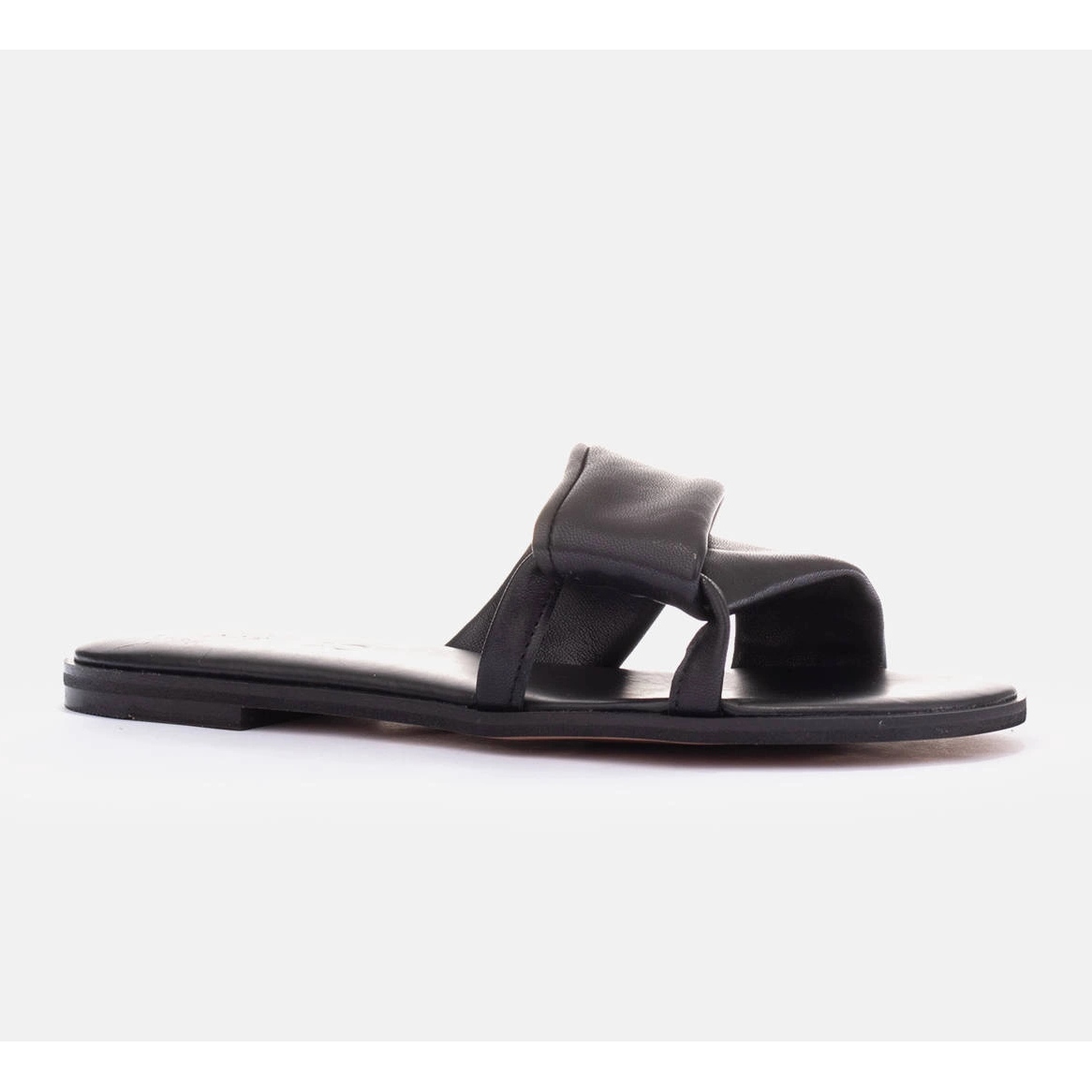 Marco Shoes Marco Shoes Leather flip flops on a flat bottom black