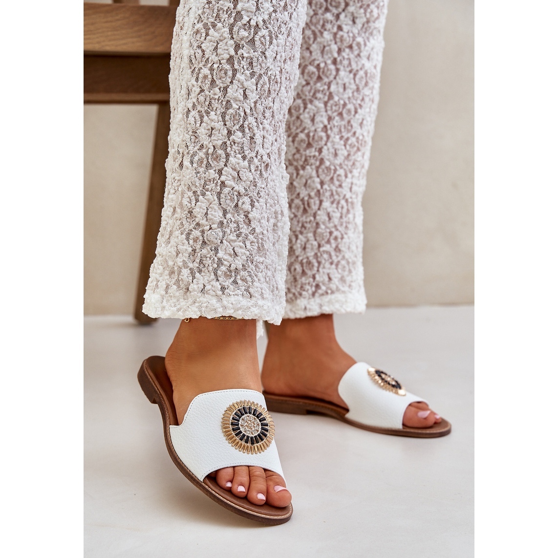 Lewski Shoes Lewski Shoes Leather flip flops with flat -heeled Lewski 3047/O decoration white