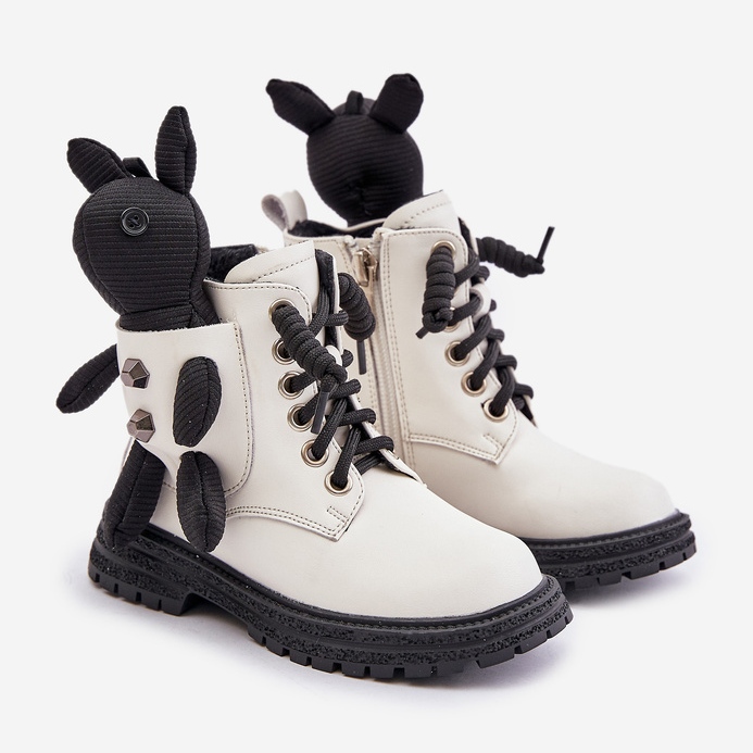 Details: Leather Insulated Children's Boots With a Zipper and a Teddy Bear Vinceza 36261 White