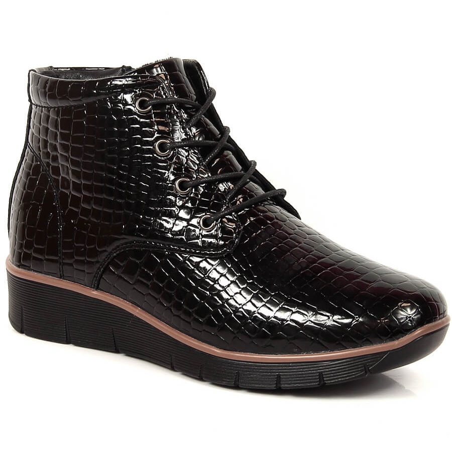 The boots are equipped with a zipper and laces, which allows for a perfect fit to the foot. The casual style and patent finish create an elegant, yet casual look that perfectly matches various styles - both everyday and for special occasions.