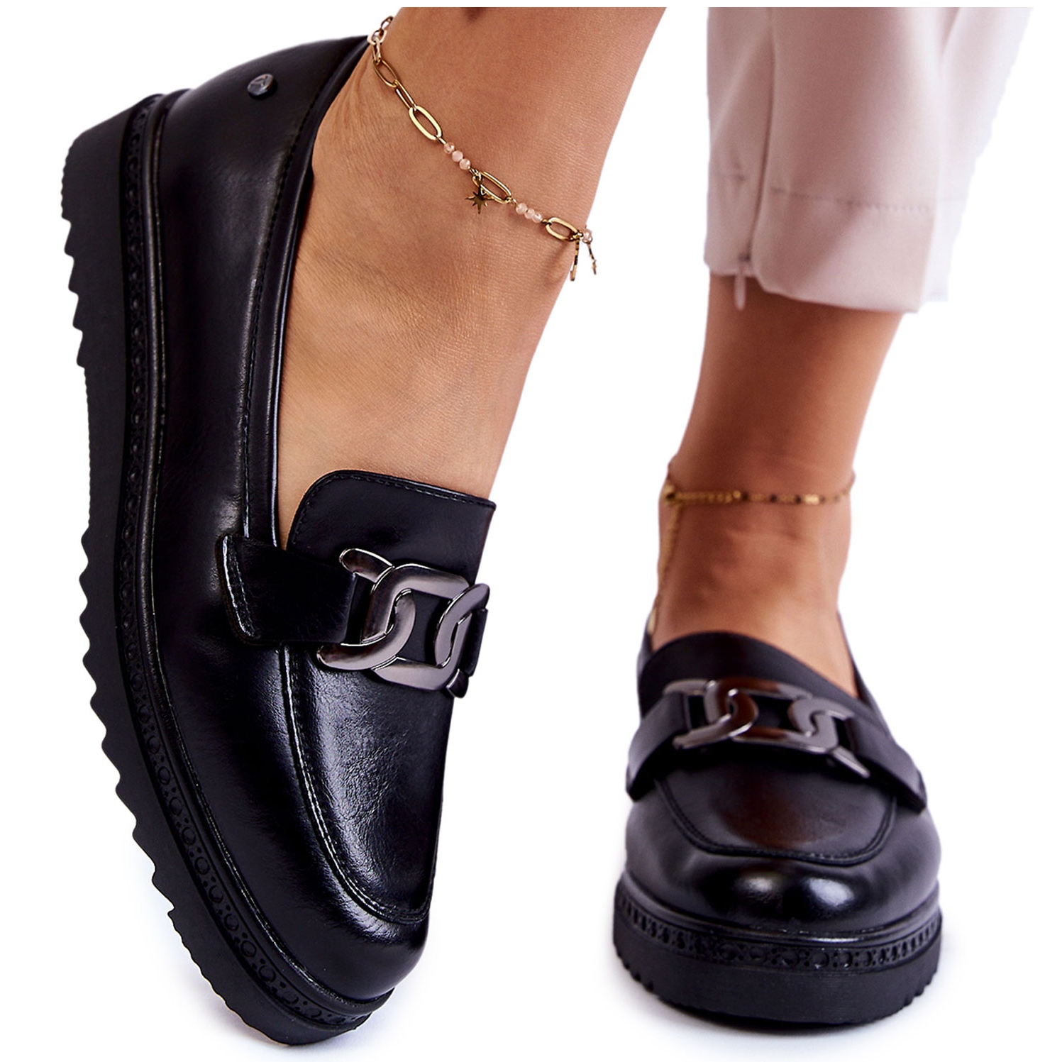 Introducing the Vinceza Abisso leather platform loafers in an elegant black color, which are a perfect combination of comfort and style. Made of high-quality eco-leather, these classic shoes stand out with a unique detail in the form of a decorative chain on the front, which gives them a unique character.
