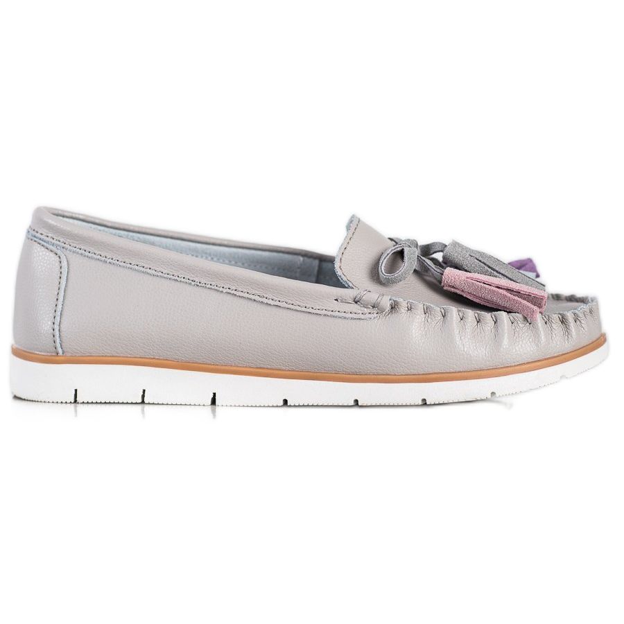 Evento moccasins stand out with a charming detail - a decorative bow finished with colorful fringes, which attracts the eye and adds lightness to the whole. The closed, soft heel ensures comfort when wearing, making them an ideal choice for everyday use. The synthetic, flat sole with tread provides stability and comfort, allowing you to enjoy every step.