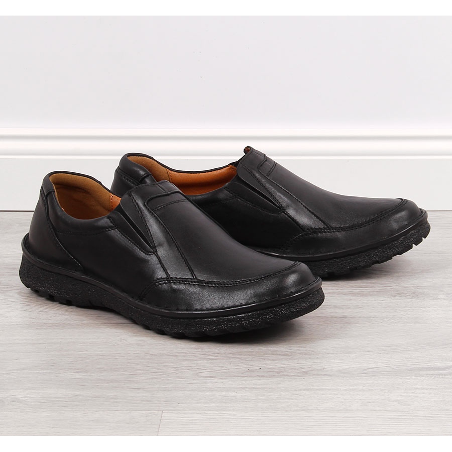 Details: Leather men's slip-on shoes, black Łukbut 946