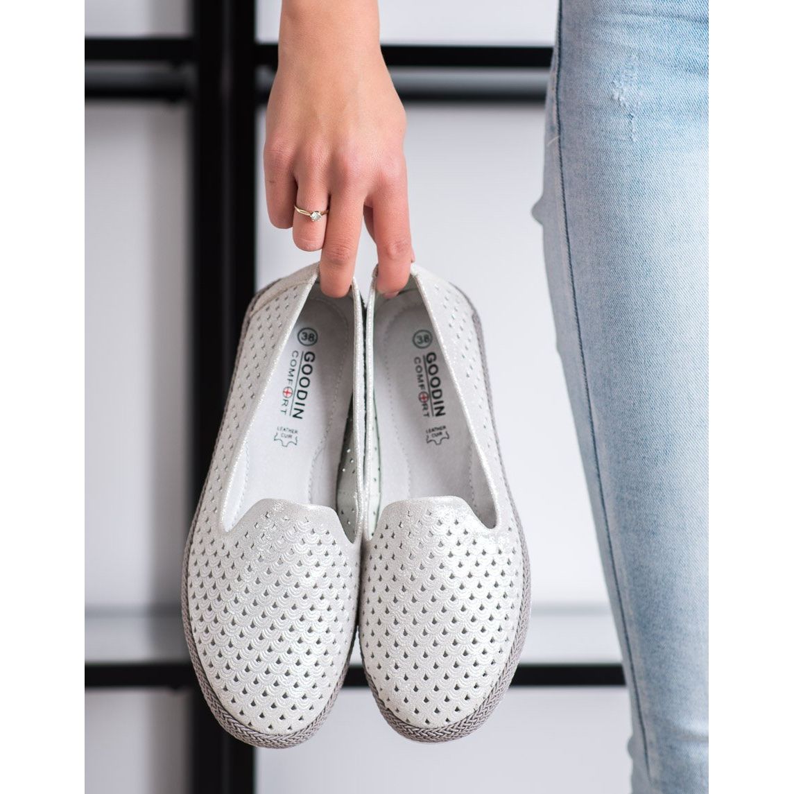 We present elegant and stylish white silver lords by Goodin, which are a perfect choice for spring and summer. These openwork ballerinas, designed with women in mind, combine a casual character with high quality workmanship.