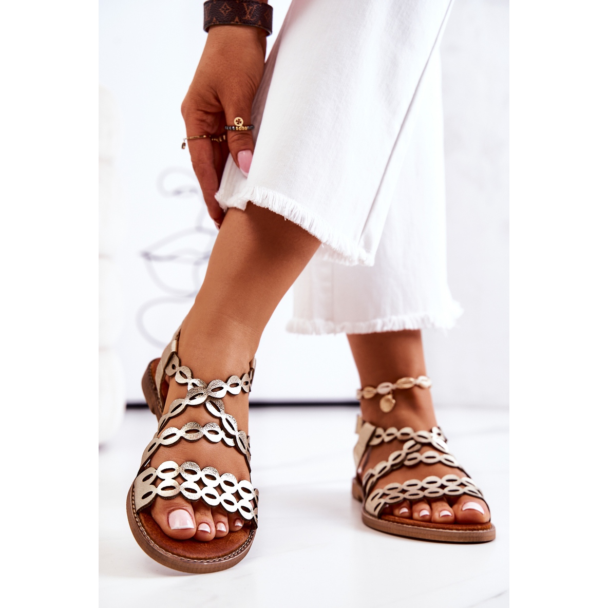 Lewski Shoes Lewski Shoes Leather Openwork Sandals Lewski 3022 Golden