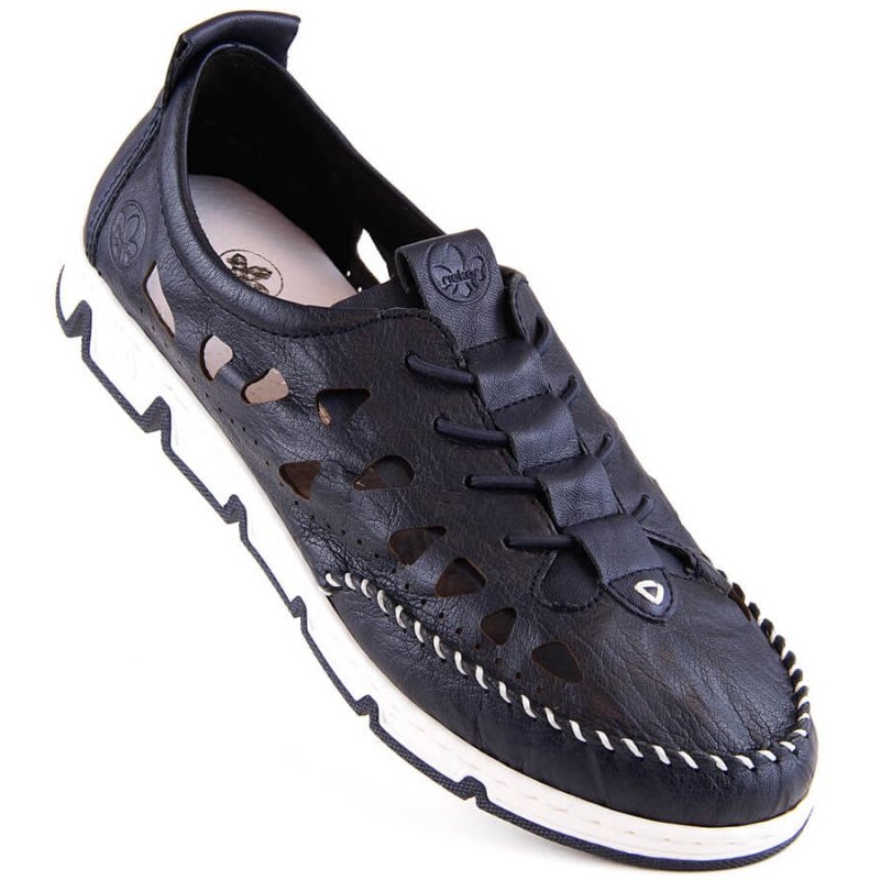Details: Leather openwork shoes Rieker W RKR652, navy blue