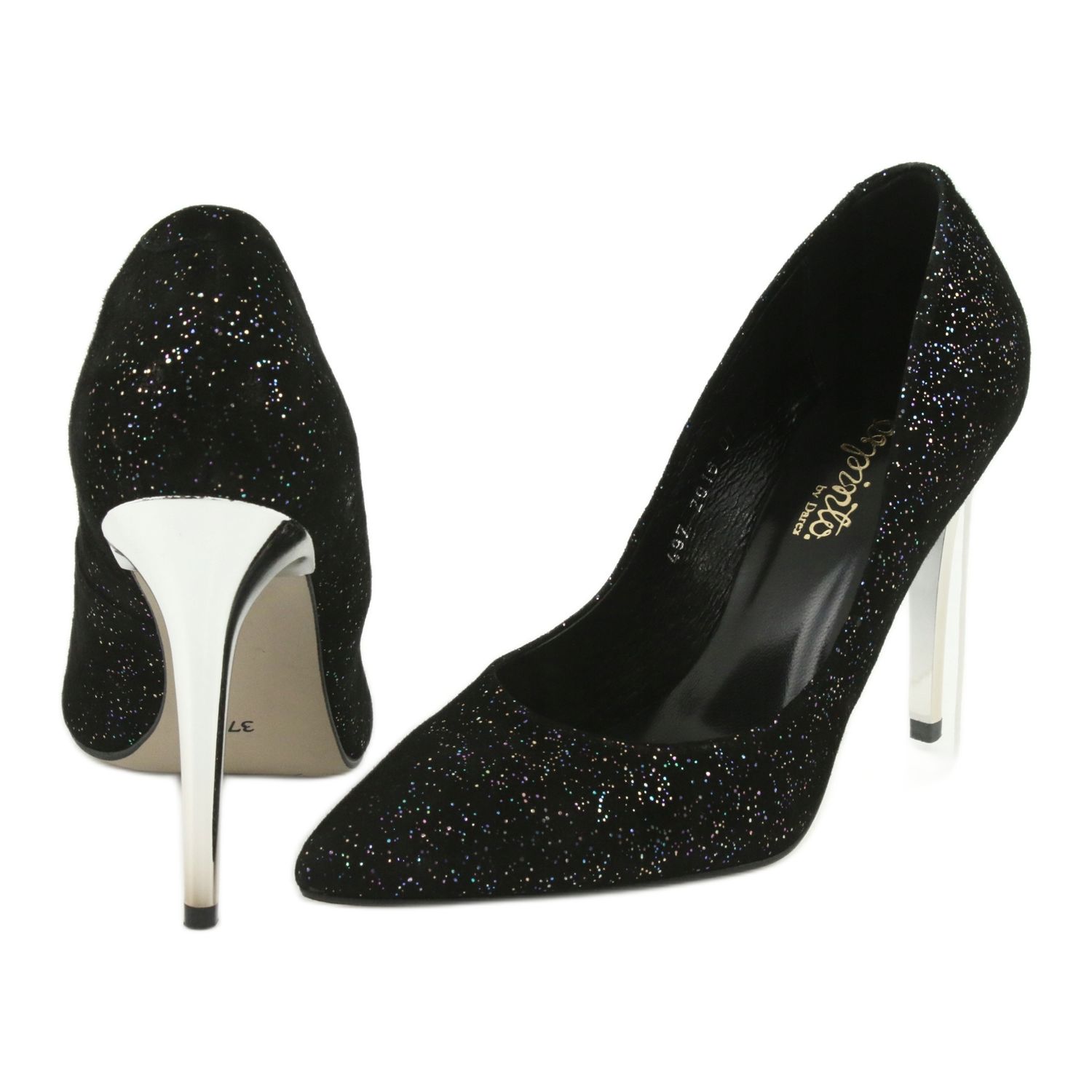 Classic black pumps from the Polish brand Espinto in a modern version. Made of natural leather, with an elegant upper decorated with subtle, colorful glitter and a contrasting silver heel. Perfect for women who value elegance, chic and comfort - perfect for special occasions: a romantic dinner, a banquet, a wedding or a New Year's Eve party.