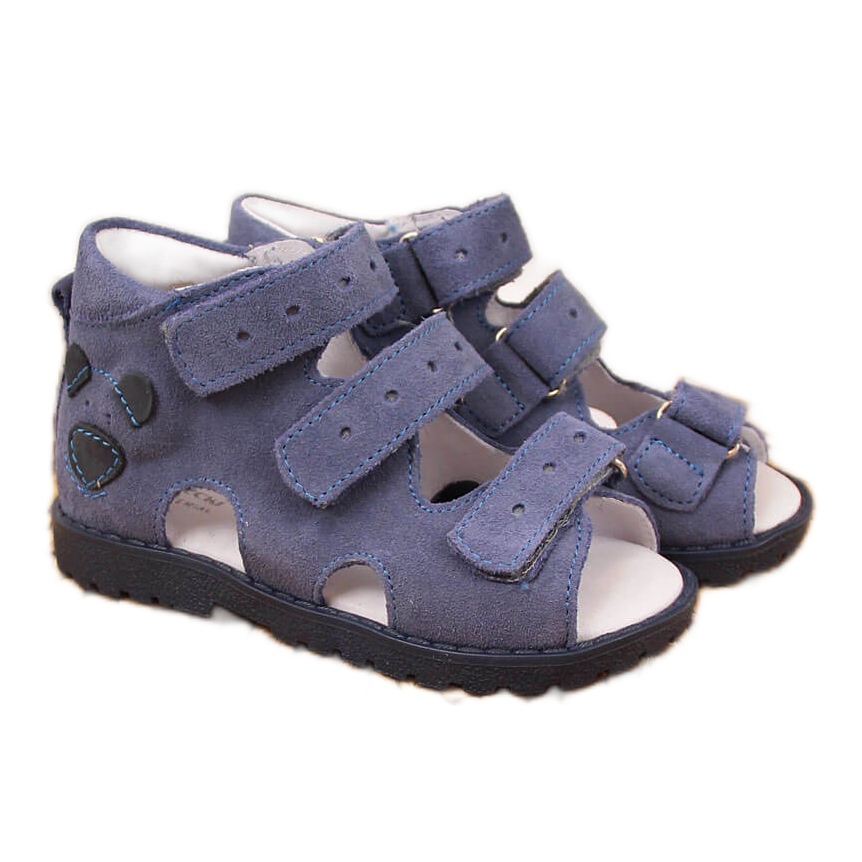 Boys' leather sandals with a bear Kornecki in blue are a great choice for every little explorer. These unique shoes, registered as a medical device, have been designed with the proper development of children's delicate feet in mind, making them an ideal solution for active boys.