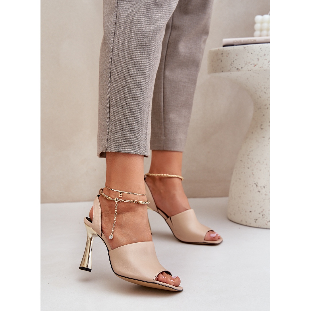 Details: Leather sandals on a high heel with a decorative Chebello 4440 beige bracelet