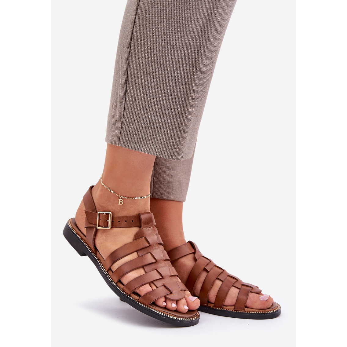 Details: Leather sandals with flat heels Zazoo 3686 Camel brown