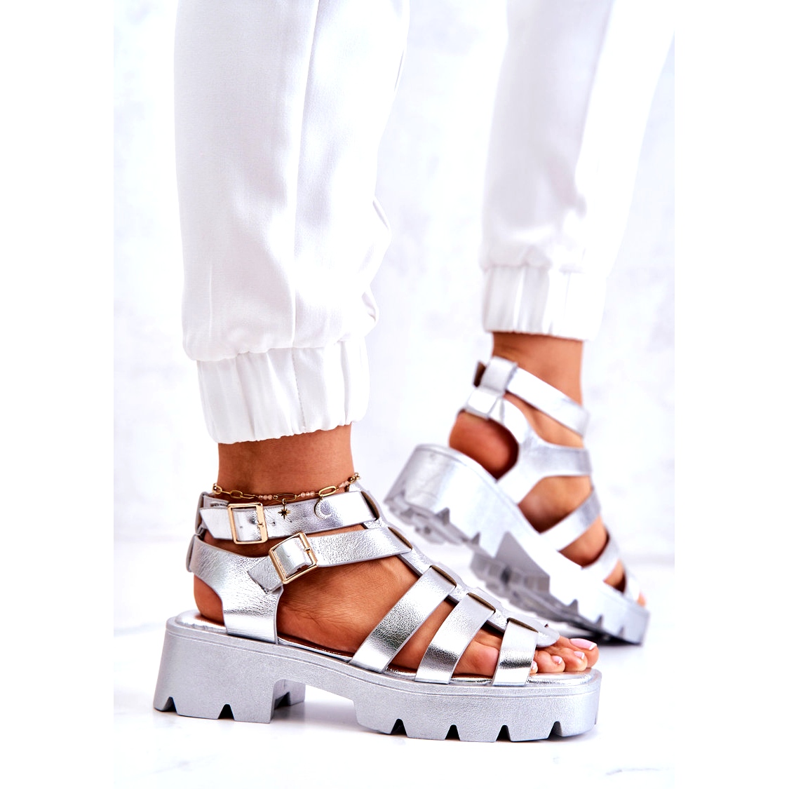 Invest in the Silver Minorite Strappy Sandals and enjoy style and comfort on summer days!