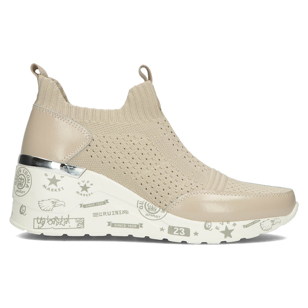 Made of breathable material, they guarantee excellent foot ventilation, which makes them perfect for everyday wear. Their classic design without patterns perfectly matches a variety of outfits, from casual to more elegant. The sole made of plastic with a platform height of 2.5 cm and a wedge heel of 6.5 cm provide stability and comfort even during longer wear.
