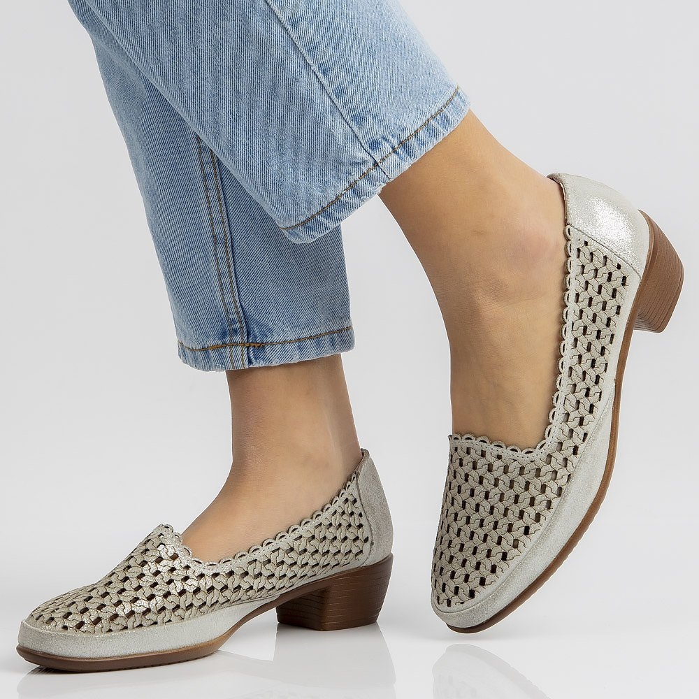 Filippo shoes are slip-on, which makes them easy to put on, and the openwork pattern adds lightness and subtlety to the entire style. The brown sole combined with the silver color of the upper creates an effective contrast that will definitely attract attention.