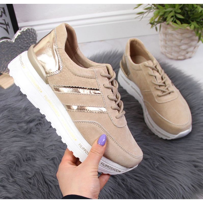 Elegant women's Sneakers Filippo in Paw328B combine a classic form with a fashionable, slightly sporty character. Natural leather and comfortable, 4 cm platform ensure comfort all day, and the universal beige color will work both in casual and more stylish styles.