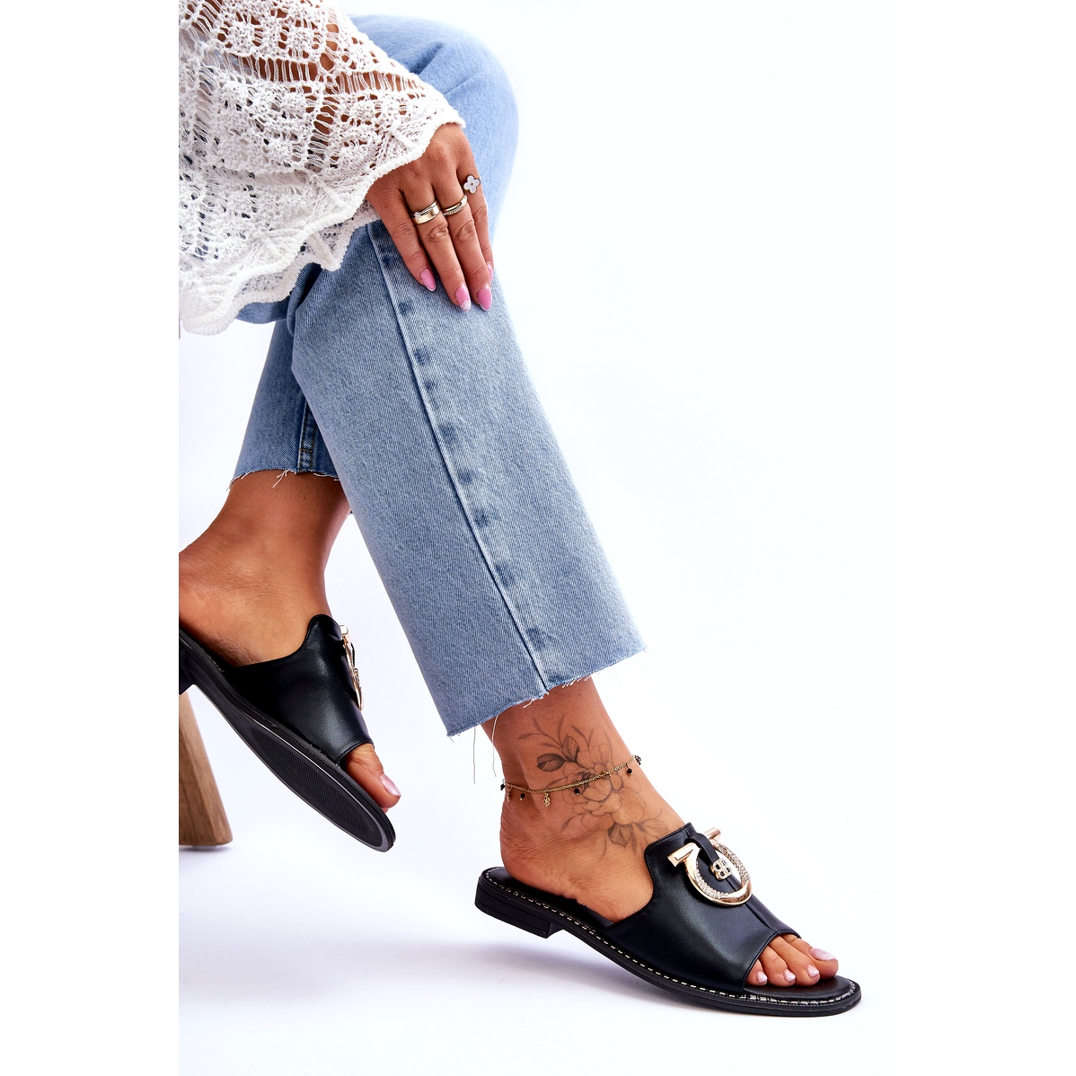 Leather Flip-Flops Comfort Shoes S.Barski KV-2775-32 Black are the perfect choice for women looking for elegance and comfort every day. Made of high-quality eco-leather, these classic flip-flops combine functionality and style. Decorated with a unique plastic decoration and rhinestones, they attract attention and give every styling a unique character.