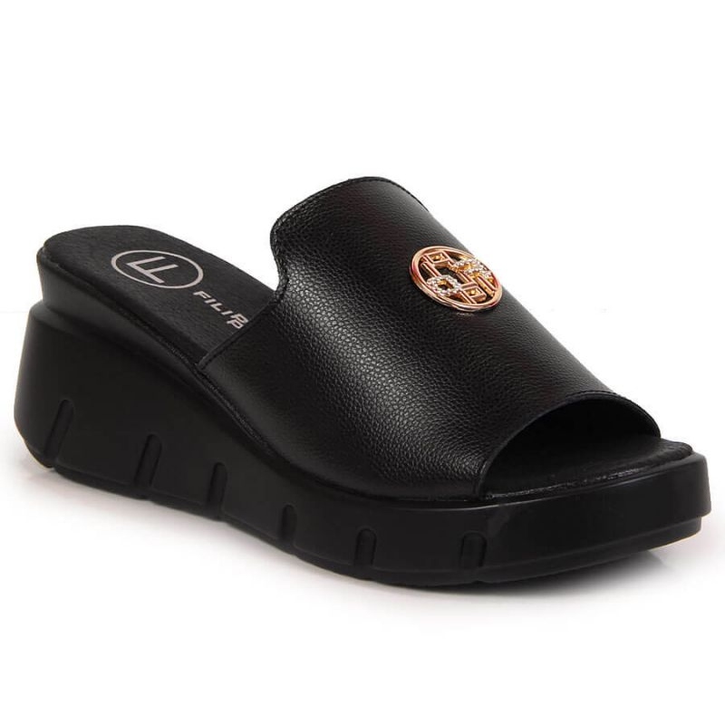 The elegant and comfortable Filippo flip flops in Paw362a are an ideal proposition for warm days. Classic, universal black and leather upper and lining ensure durability and comfort of use, and a 7-centimeter wedge subtly extends the figure while maintaining stability.