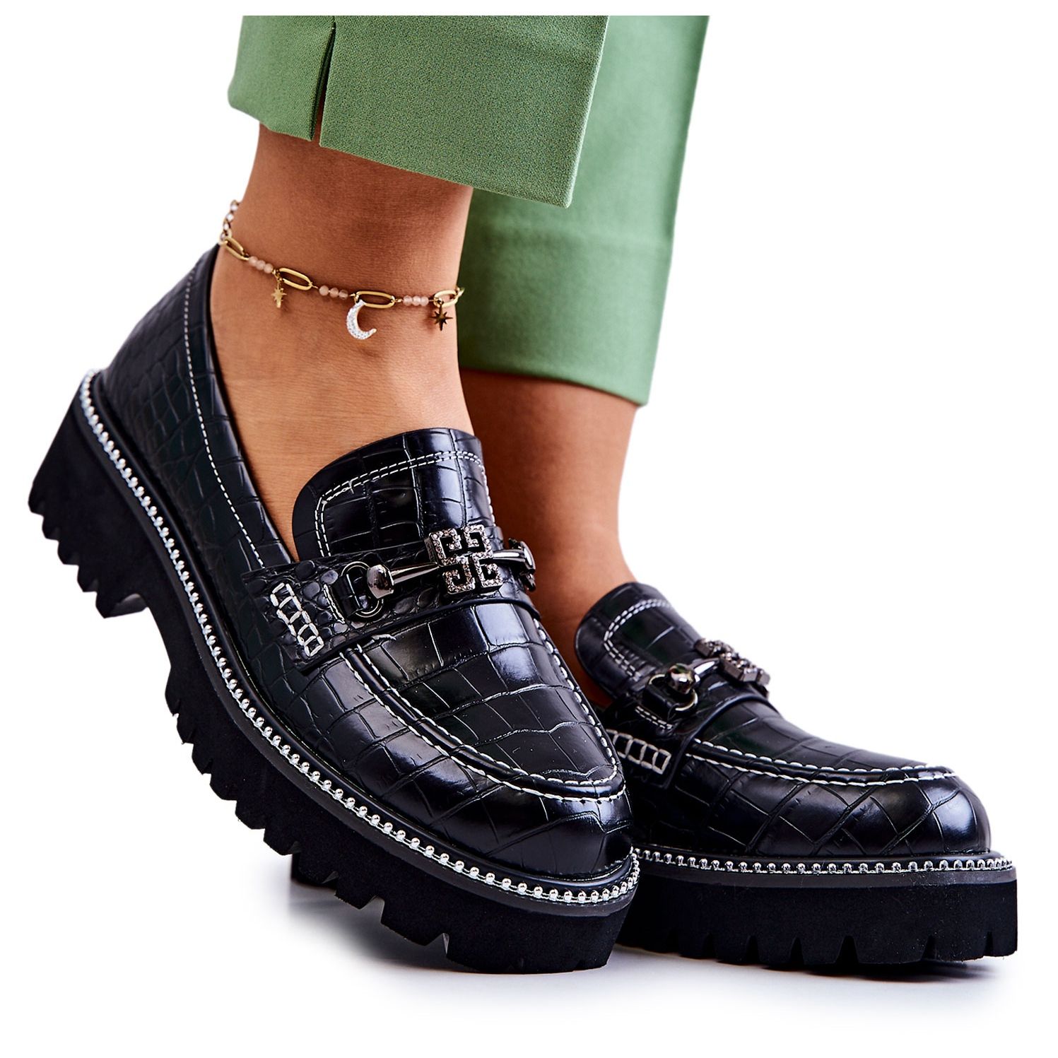 **Snake-pattern leather loafers with decoration Black Adison by S.Barski**
