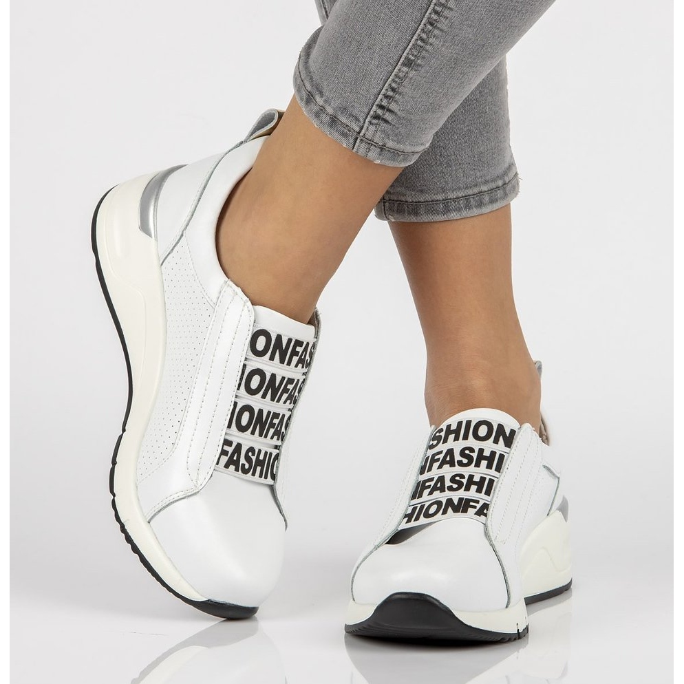 The platform height of 1.5 cm and the comfortable 4 cm wedge make this model optically lengthen the legs, adding grace to every figure. The white Filippo sneakers are slip-on, which makes them easy to put on and take off, and their minimalist design makes them easy to match with various styles.