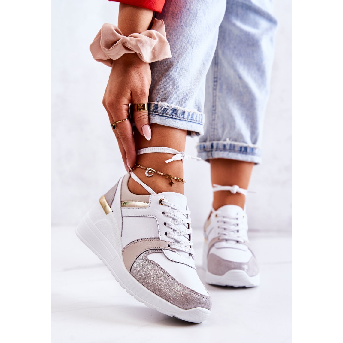 S.Barski S.Barski Leather sport shoes on a wedge white and gray Rayana