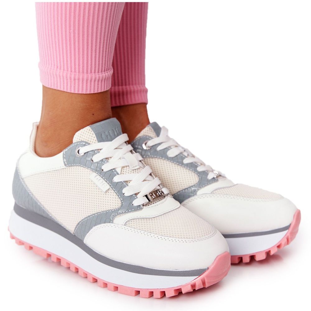 We present the GOE HH2N4008 leather sports shoes on the platform in white with multi-colored accents - the perfect choice for women who value comfort and style. These women's shoes from the renowned Polish brand GOE combine modern design and high quality workmanship.