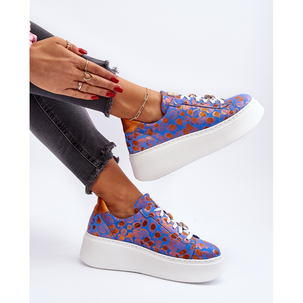 Details: Leather Sports Shoes on the Platform Maciejka 06191-06 Blue