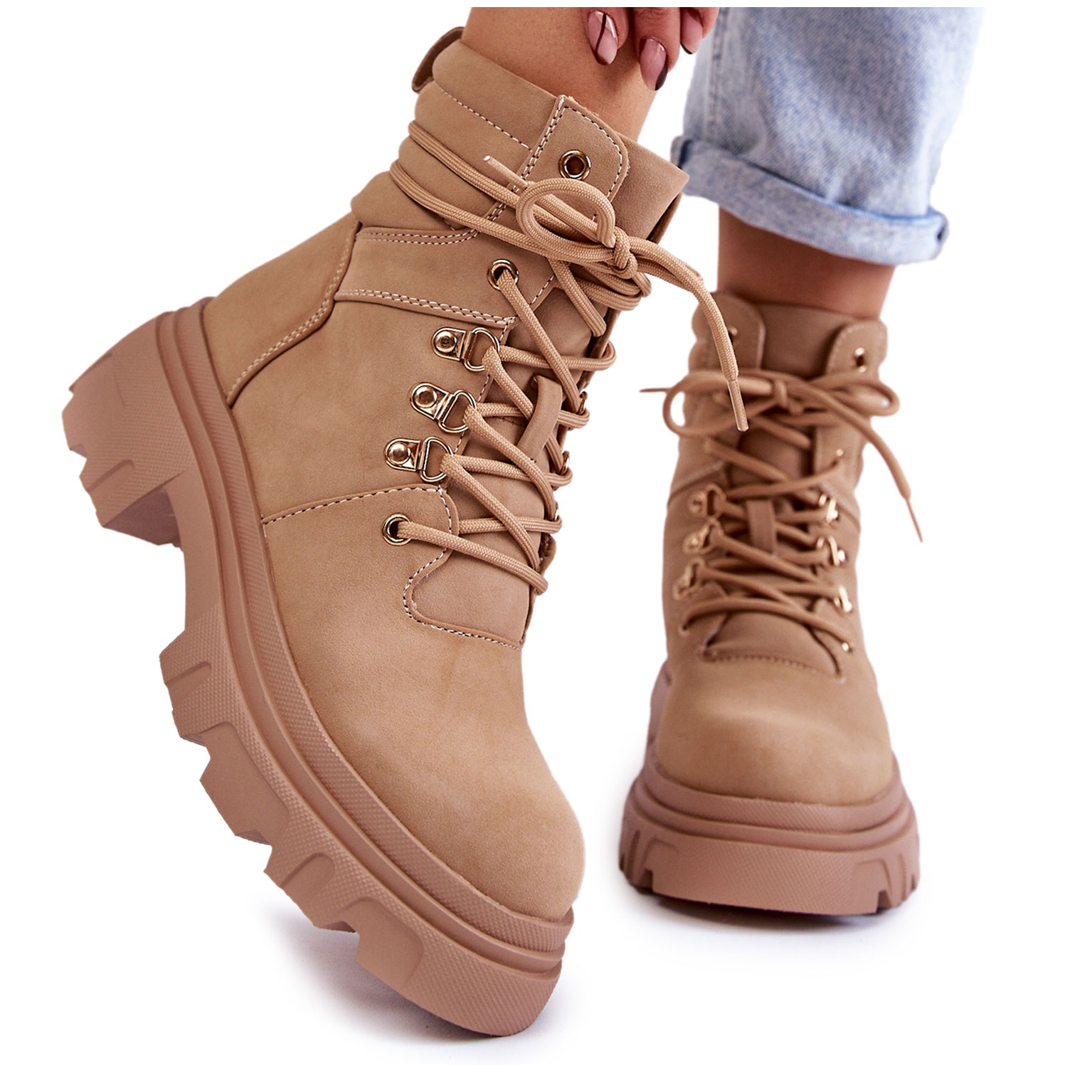 Inna marka Leather Warm Lace Up Boots Beige Merisha