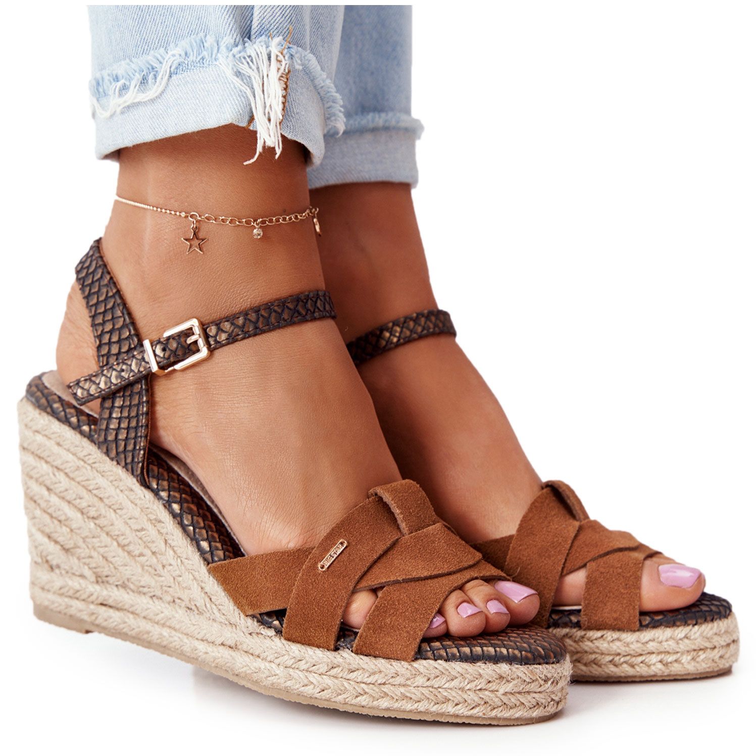 Discover the comfort and elegance of summer with the brown leather wedge sandals Big Star HH274377. These unique shoes from a renowned Polish brand combine fashionable design and comfort of wearing. Made entirely of high-quality natural leather and suede, they guarantee durability and a stylish look.