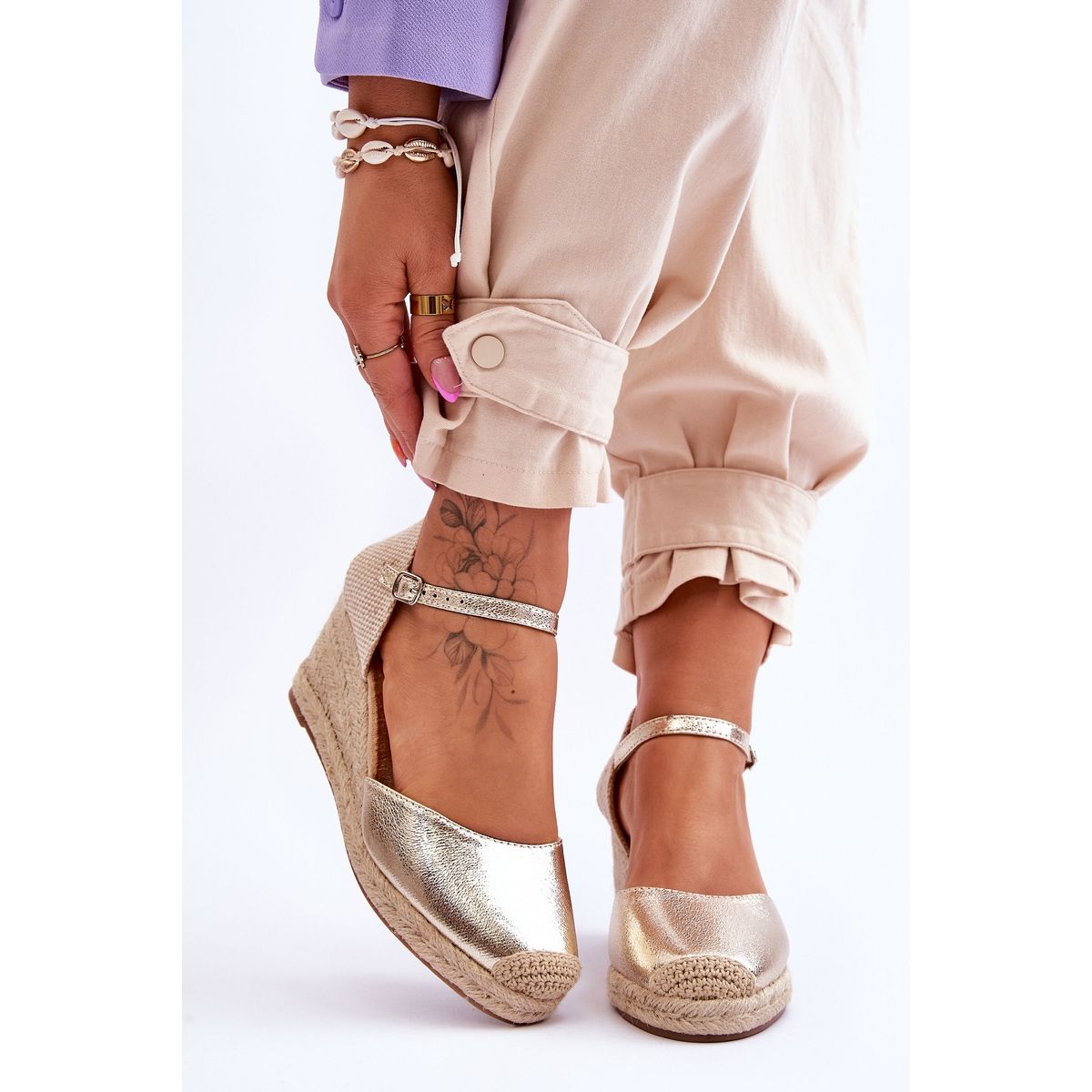 Details: Leather Wedge Sandals Espadrilles Gold Cammer golden