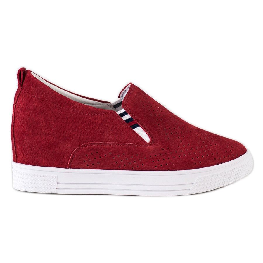 The footwear is characterized by a hidden wedge with a height of 6.5 cm, which wonderfully slims the legs, while providing stability while walking. The heel in the construction is built-in and soft, which guarantees comfort of wearing all day long. Excellent quality of workmanship, thanks to the use of 100% natural leather in both the outer and inner layer, makes the shoes not only stylish, but also durable and comfortable.