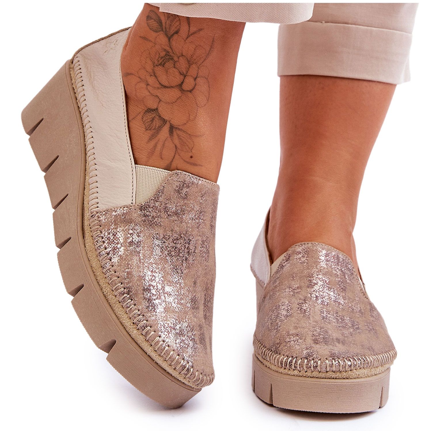 Maciejka Leather Wedge Sneakers Maciejka 5814A-10 Beige