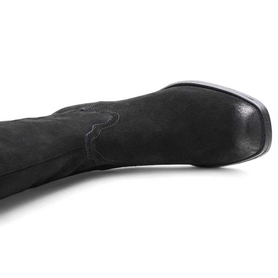 The height of the upper of about 37 cm means that the boots reach to the knee, and a flat heel with a height of 4 cm provides comfort during daily activities. The round nose gives them a classic character, and the universal black color makes them perfectly blend with various stylizations - both in casual and more elegant versions.
