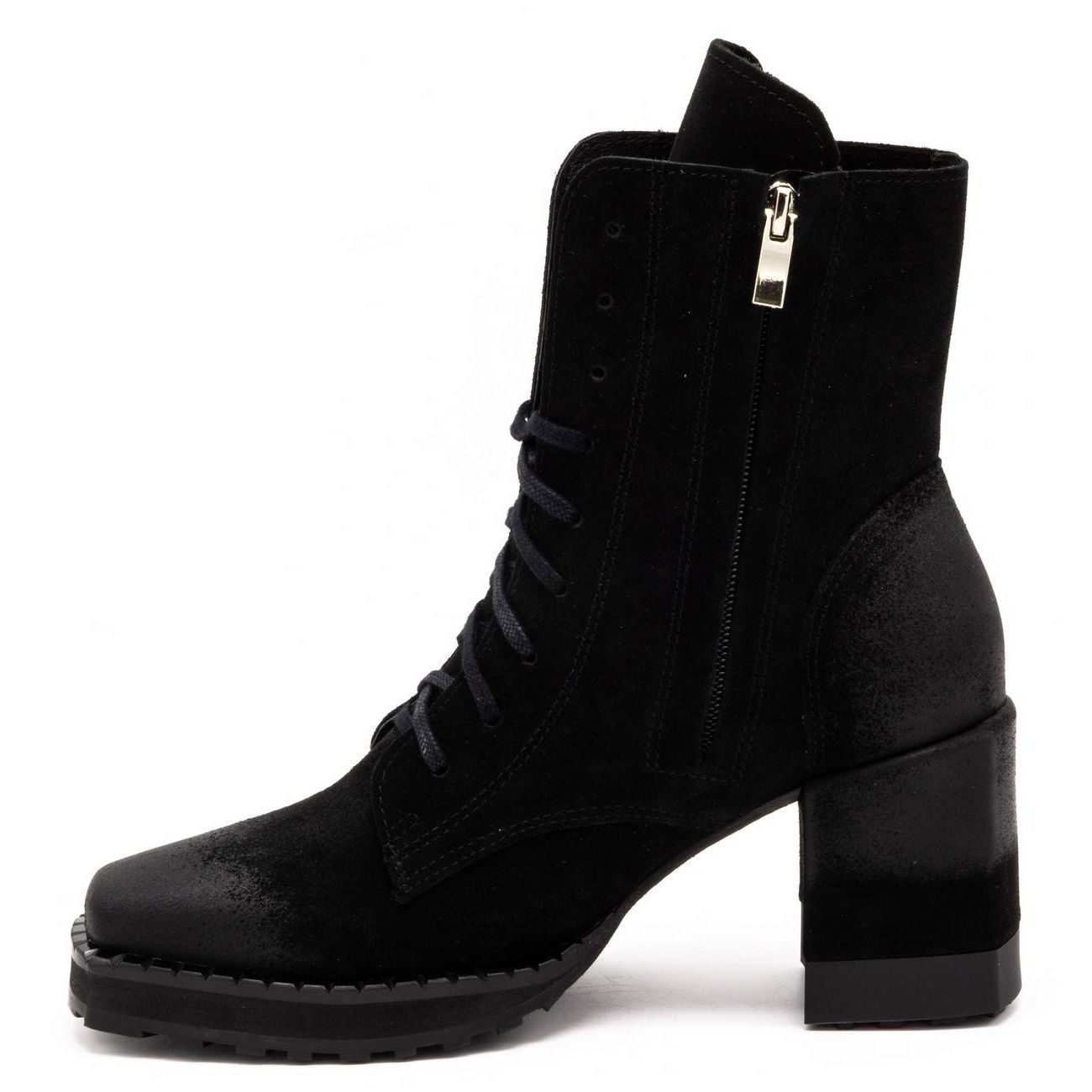 Exquisite 1287EX women's ankle boots are a combination of elegance and comfort that will surely attract the attention of every lover of fashionable accessories. Made of high-quality natural leather, both outside and inside, they guarantee excellent durability and comfort of wearing. This model stands out with its modern design - it is characterized by a square toe and a practical fastening in the form of lacing and a zipper, which makes it fit perfectly to the foot.
