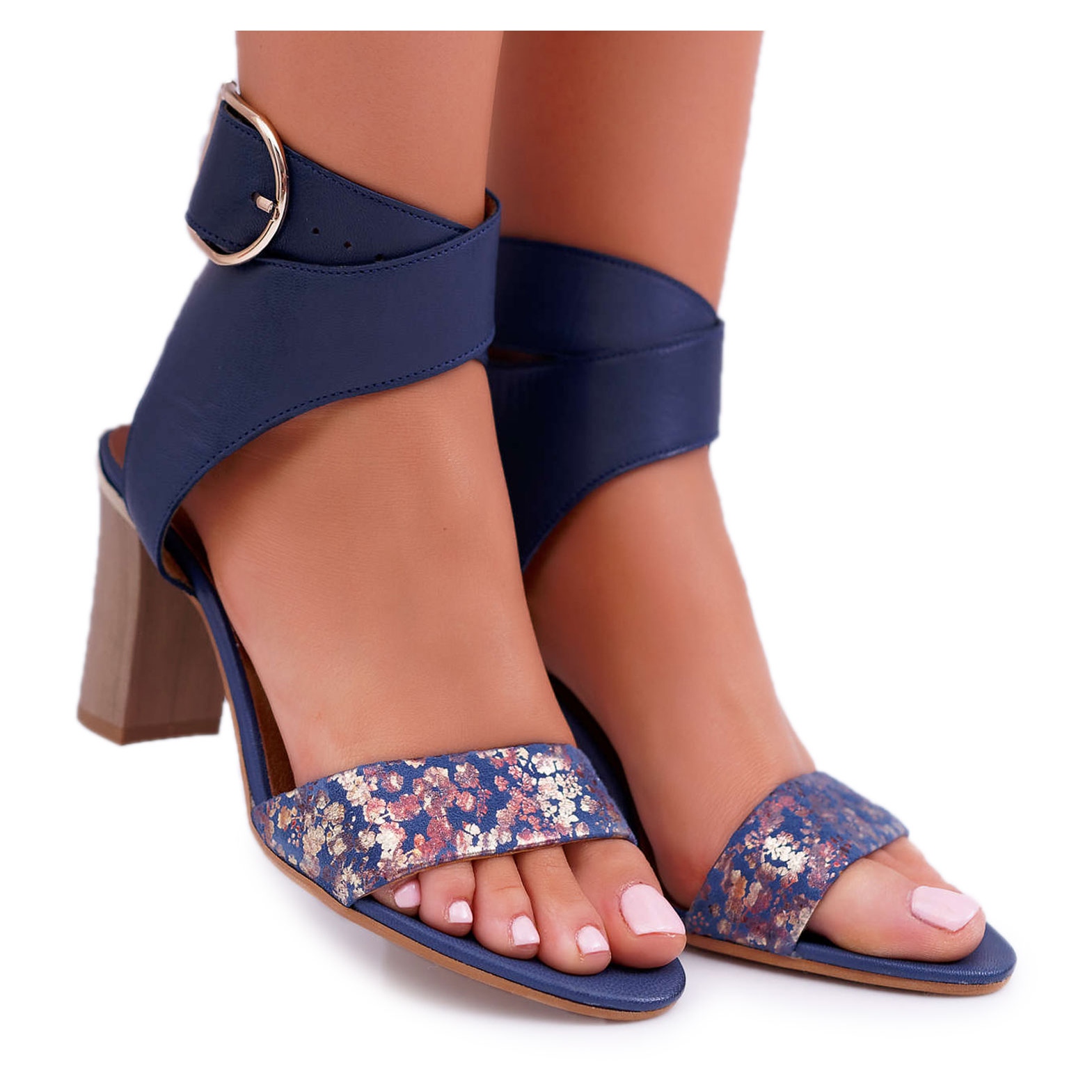 Maciejka Leather Women's Sandals Maciejka On a Heel Navy Blue 03597