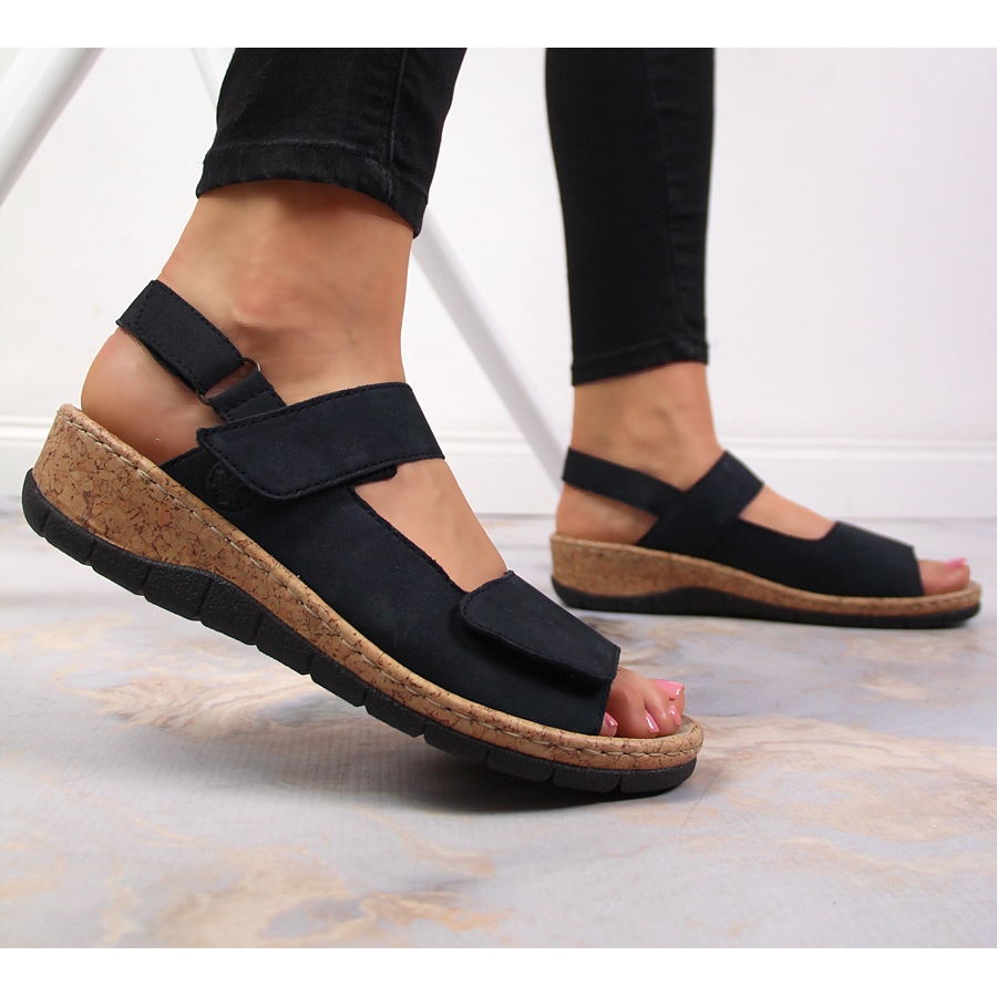 Rieker V7170-14 women's leather wedge sandals are a great choice for women who value elegance and comfort every day. Made of high-quality natural leather, these navy blue sandals combine classic style with modern style, perfectly fitting into the canons of fashion.