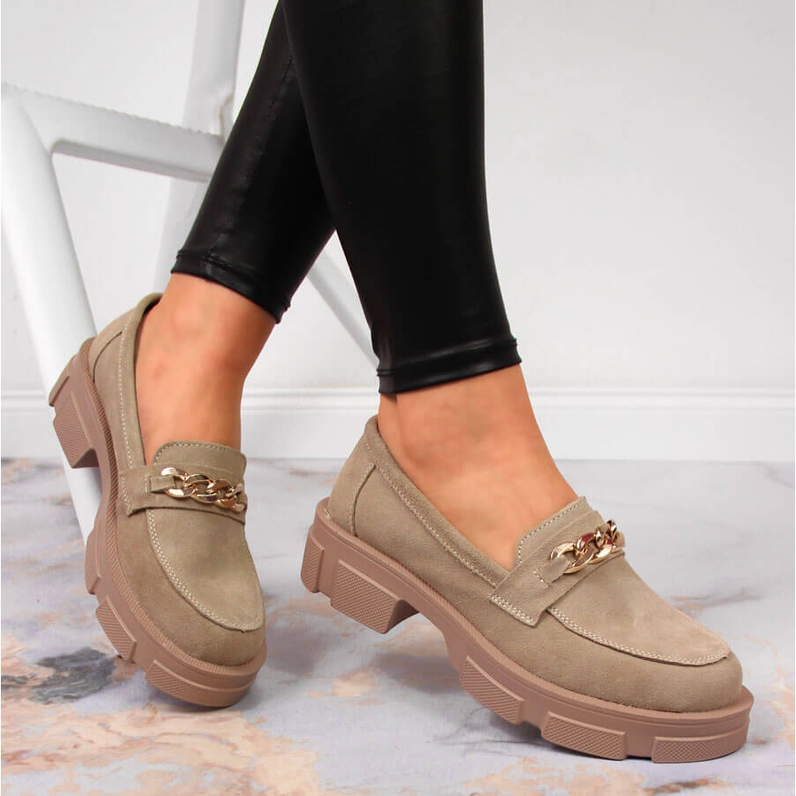 Details: Leather women's shoes with a chain beige Filippo