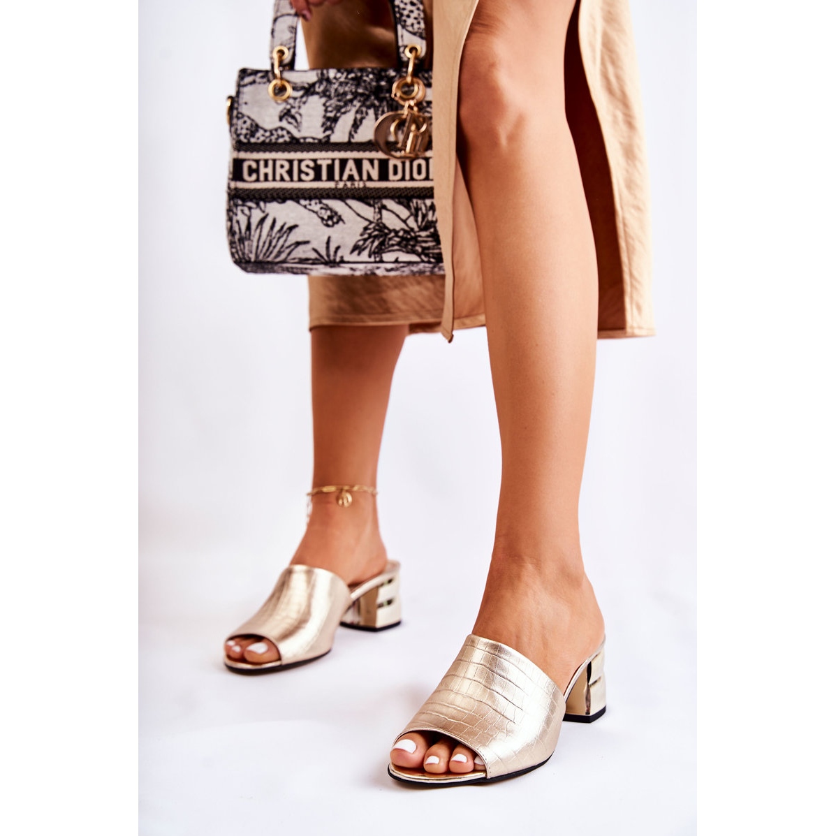 PA2 PA2 Leather Women's Slippers Crocodile Pattern On Heel Golden Perry