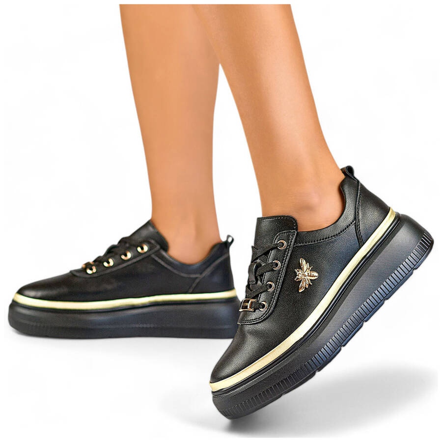 Inna marka Leather women's sports shoes on the platform, black GD-XF120C-B