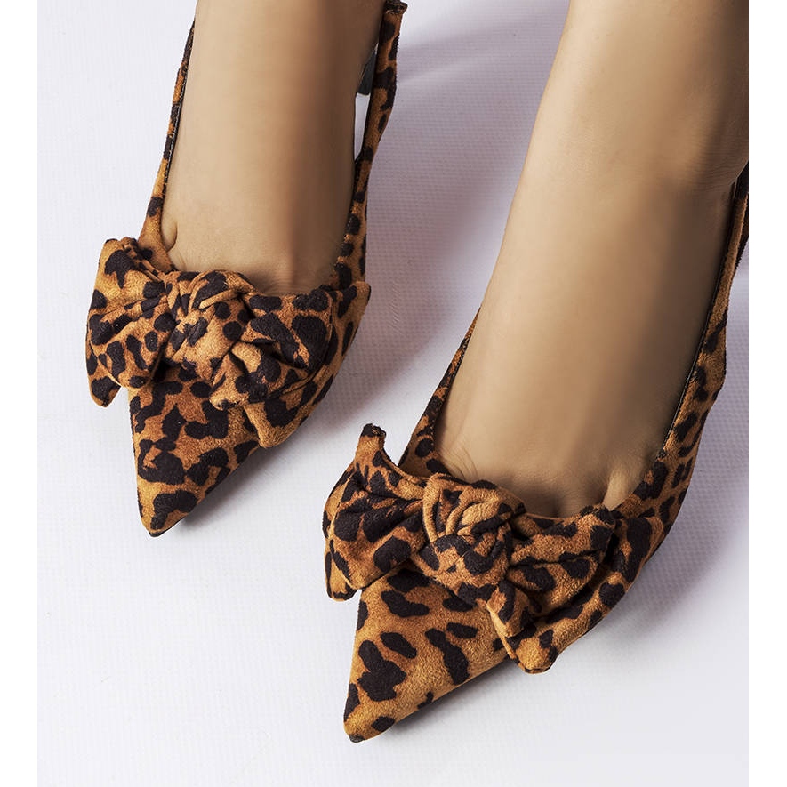 Discover the extraordinary leopard-print stilettos with a bow by Olengo, which will add a unique character to your styling. These elegant shoes were designed for women who want to look amazing in every situation. The slim 10 cm heel and pointed toe perfectly emphasize the legs, optically lengthening them. With an open heel, these stilettos are the perfect choice for summer days and evening outings.