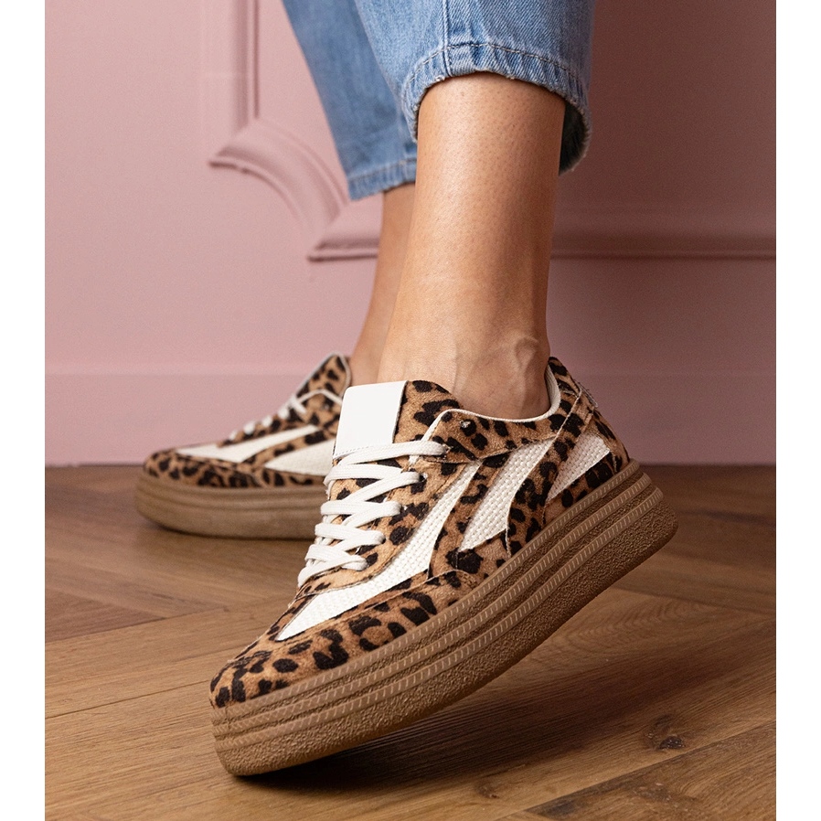 Inna marka Leopard sneakers sneakers on a thick sole brown