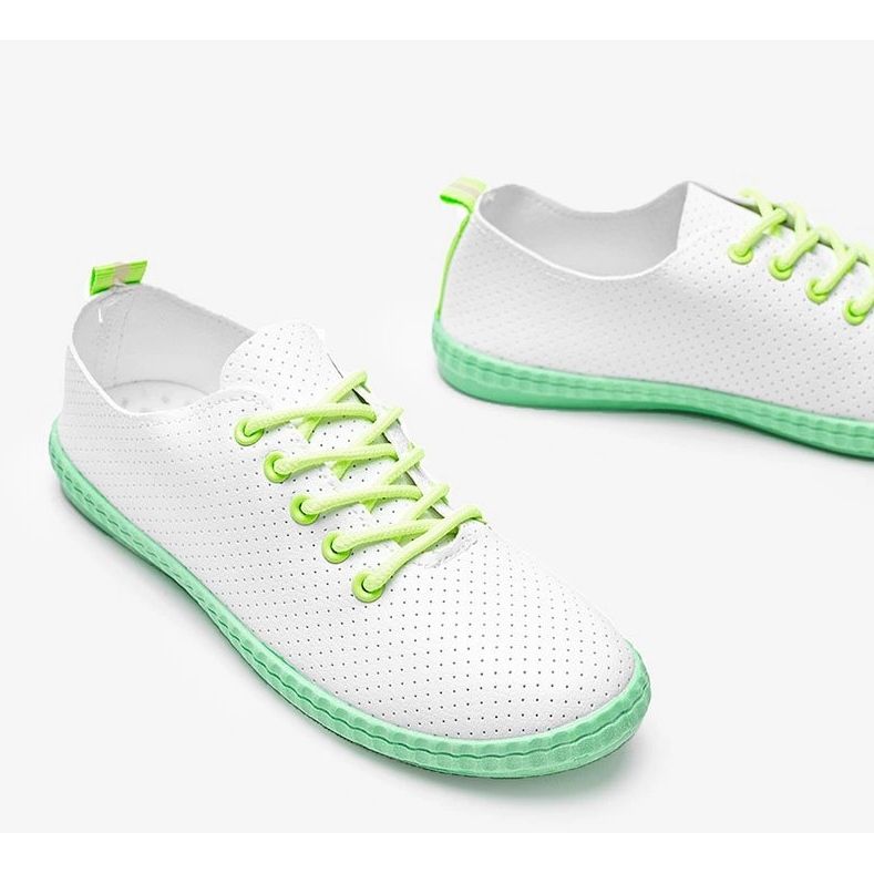 Neon green accents provide a beautiful contrast to the white color, creating a fashionable set that attracts attention. The DD1825A-12 model is characterized by a comfortable, round toe and low height, which makes them ideal for everyday styling. The rubber sole provides good grip and comfort of wearing, and the material of the fabric insole guarantees comfort throughout the day.