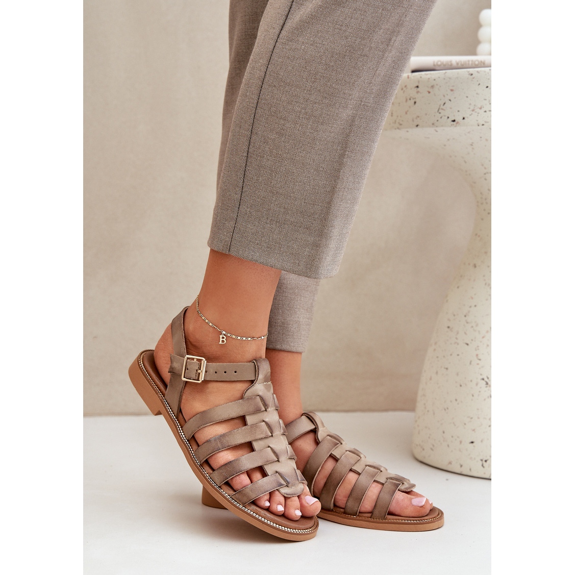 Leather sandals with flat -heeled Zazoo 3686 in a dark beige shade is the perfect choice for warm, summer days. These elegant sandals, made of natural leather, combine comfort and style. They have an adjustable belt with a buckle that allows you to perfectly match the foot, which guarantees comfort and stability at every step.