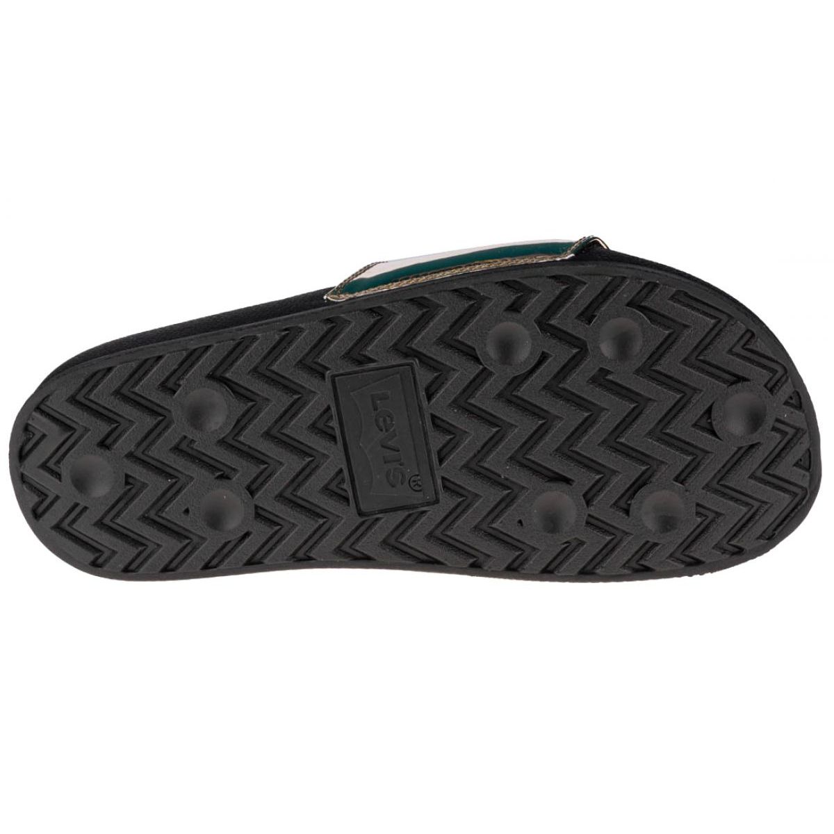 Discover Levi's June Batwing SW 229170-755-04 flip-flops, perfect for women who value style and comfort. These elegant flip-flops in black with metallic gold accents stand out not only for their attractive design, but also for their high quality workmanship. Perfect for the pool, beach or everyday outings, they are a great choice for summer days.
