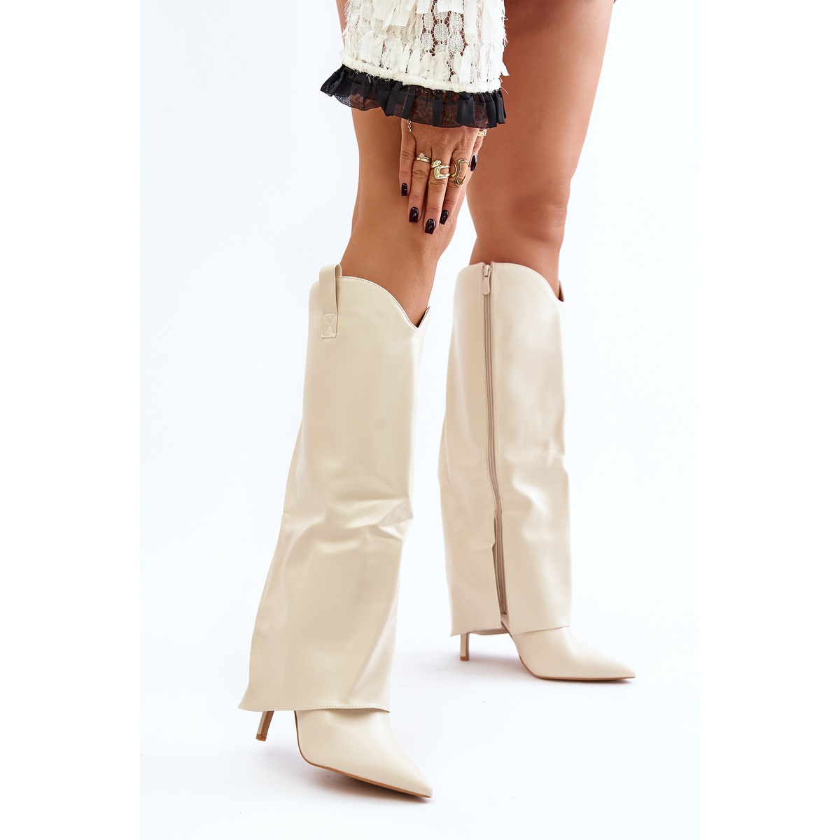 Inna marka Light Beige Bellinna High Heel Boots With Turn-Down Shaft