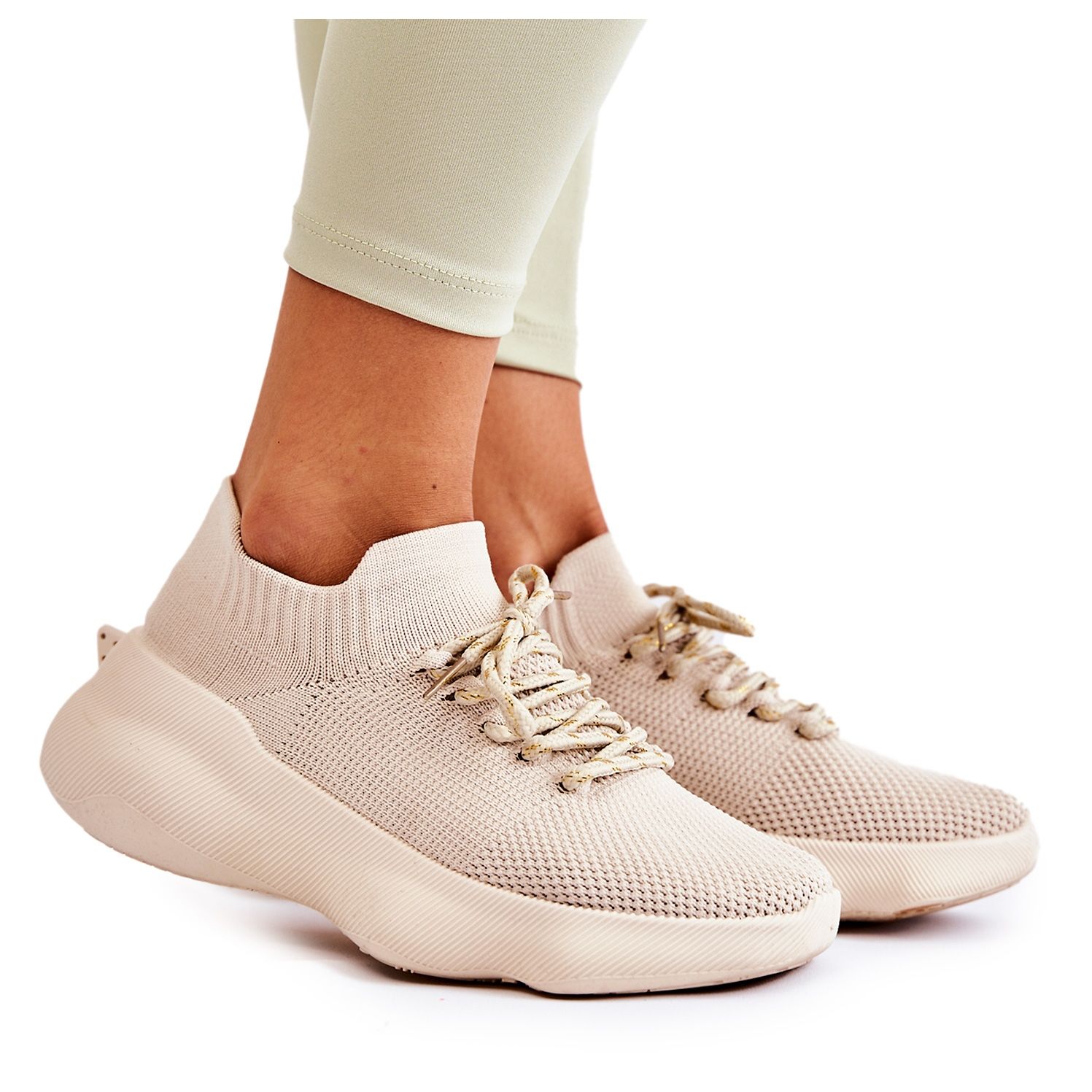 Stylish and comfortable slip -in Sneakers in a universal, light beige color. Made of breathable fabric, perfect for everyday - for walks, work and urban stylizations. The upper reaches into the ankle and is finished with a delicate welt, which makes it easier to put on, and additional lacing allows for individual fit. The model set on a stable plastic sole provides comfort throughout the day.