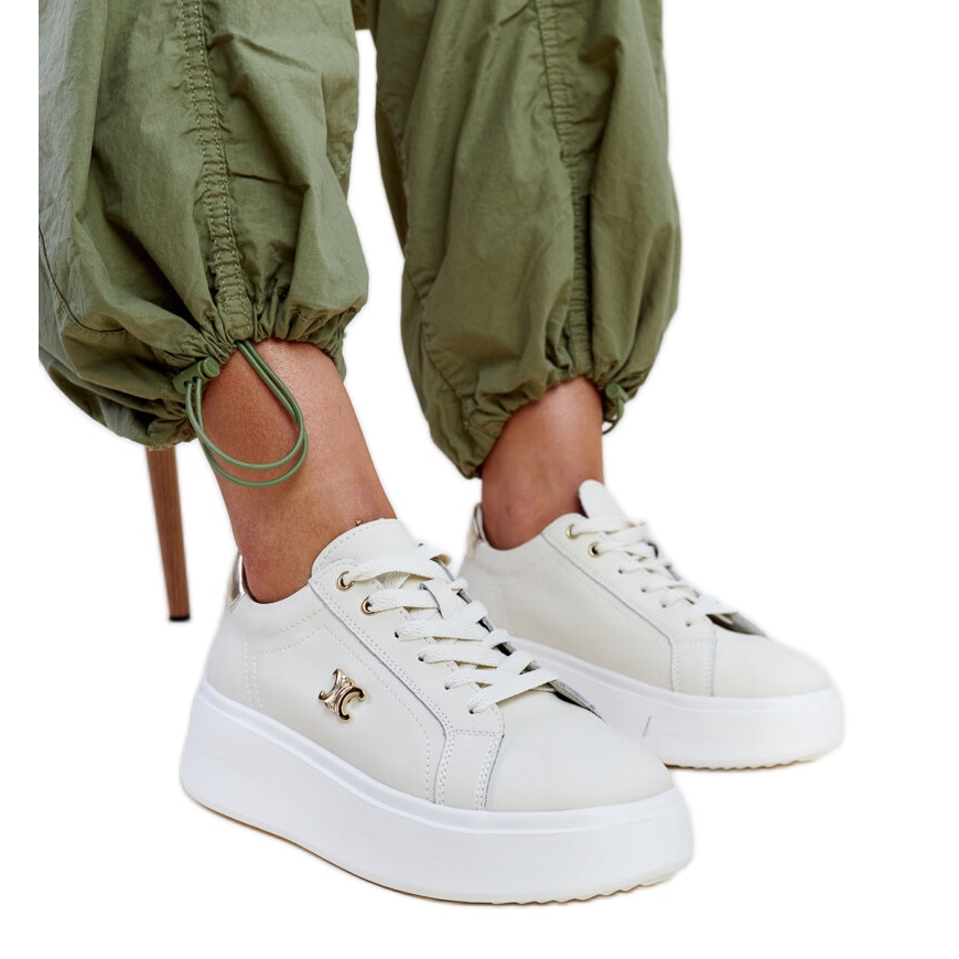 Inna marka Light beige leather sneakers with a high sole, Melita