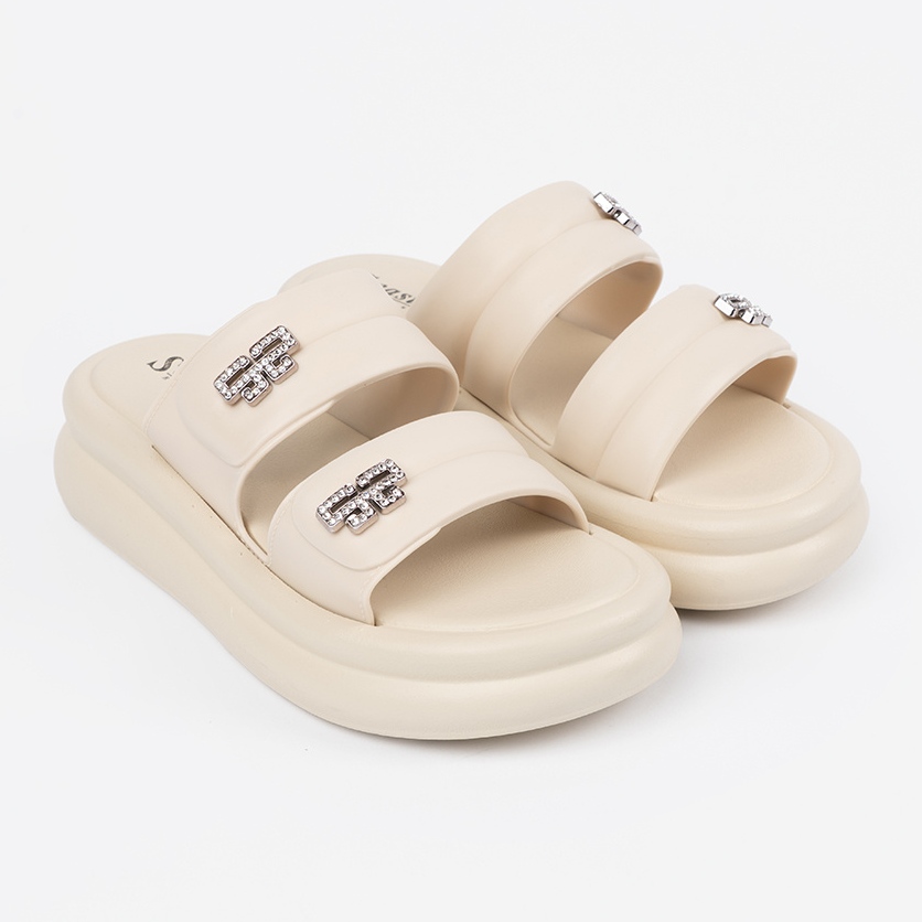 The 4 cm high platform perfectly emphasizes the figure, without losing stability. An additional advantage of flip flops are subtle rhinestones, which give them shine and make them easily combined with both casual and more elegant stylizations.