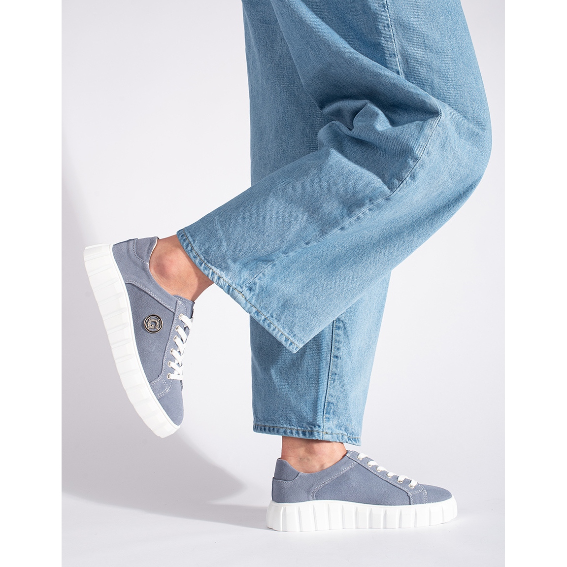 Blue shoes on the suede leather platform are a great proposition for women who value a combination of comfort and style. Made of high quality natural leather, both outdoors and inside, provide excellent breathability and comfort of wearing throughout the day.