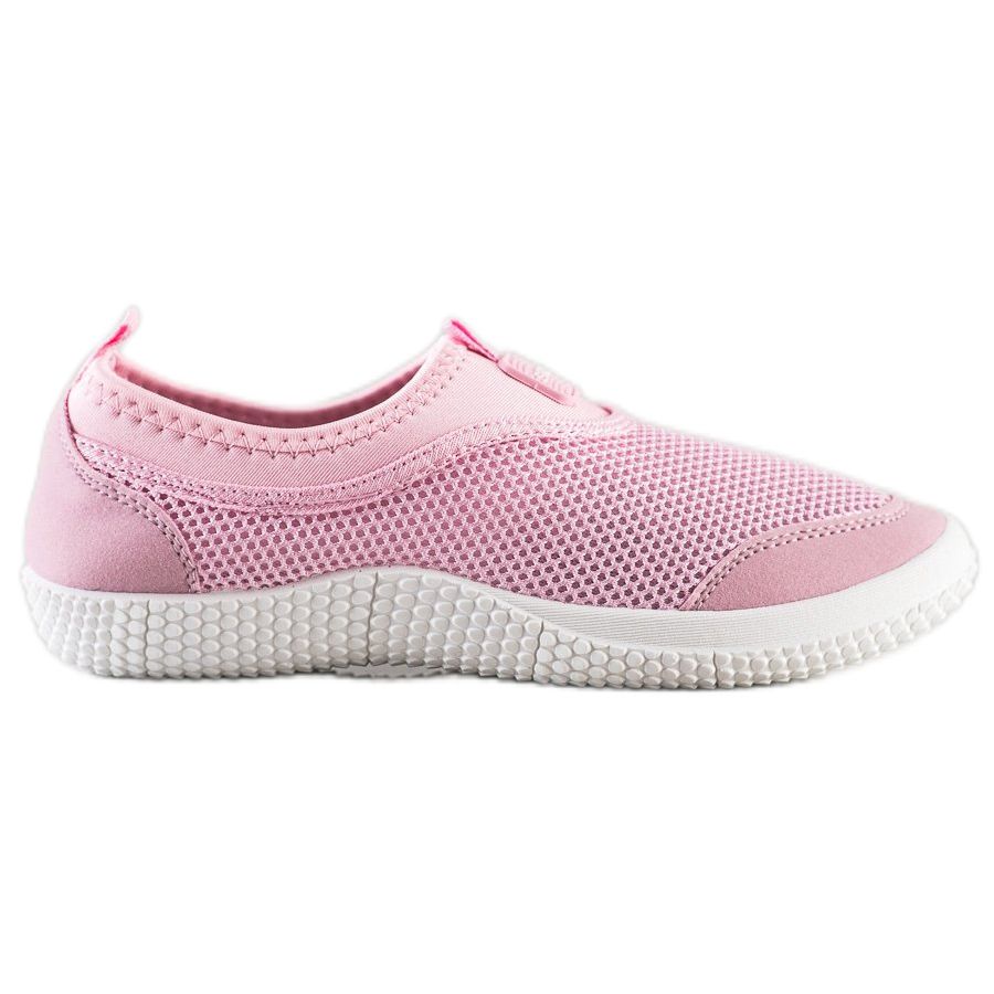 Slip-ons are distinguished by a soft, closed heel, which ensures comfort when worn. Made of 100% textile, openwork material, they perfectly breathe, which means that feet remain fresh even on hot days. The round toe adds charm, and the pink color introduces a breath of romanticism to any styling.